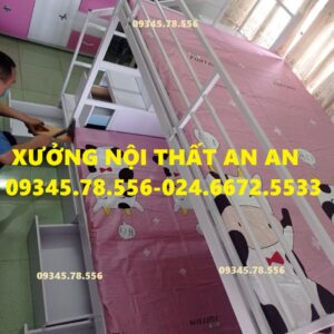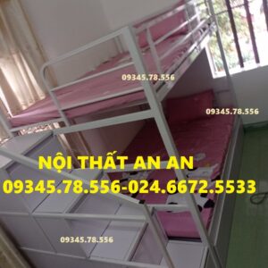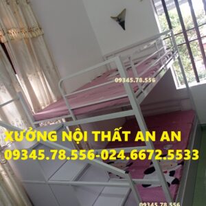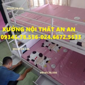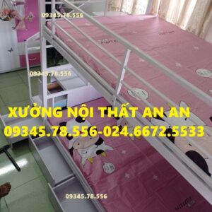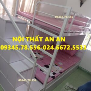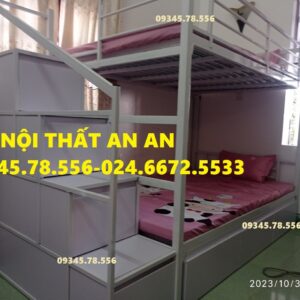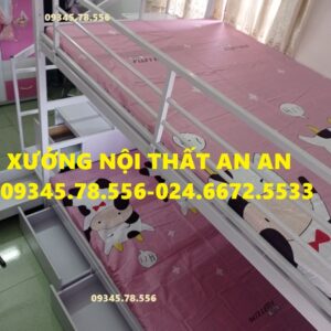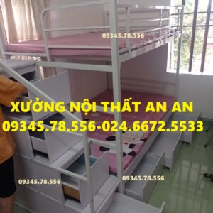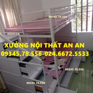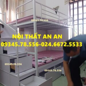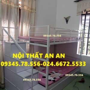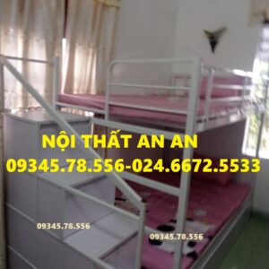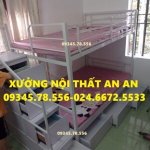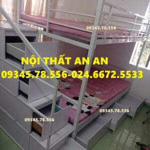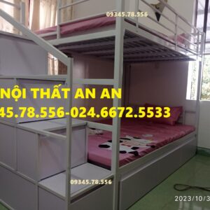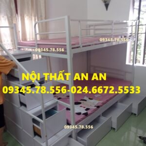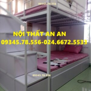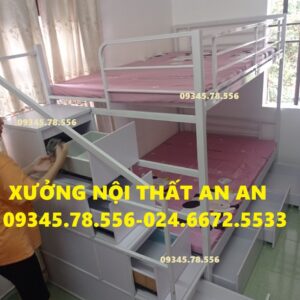 Giường tầng sắt hộp40 rộng 1m2/1m2 dài 2m45 cầu thang hộp có ngăn kéo gỗ dễ dàng đi lại, sơn tĩnh điện siêu bền